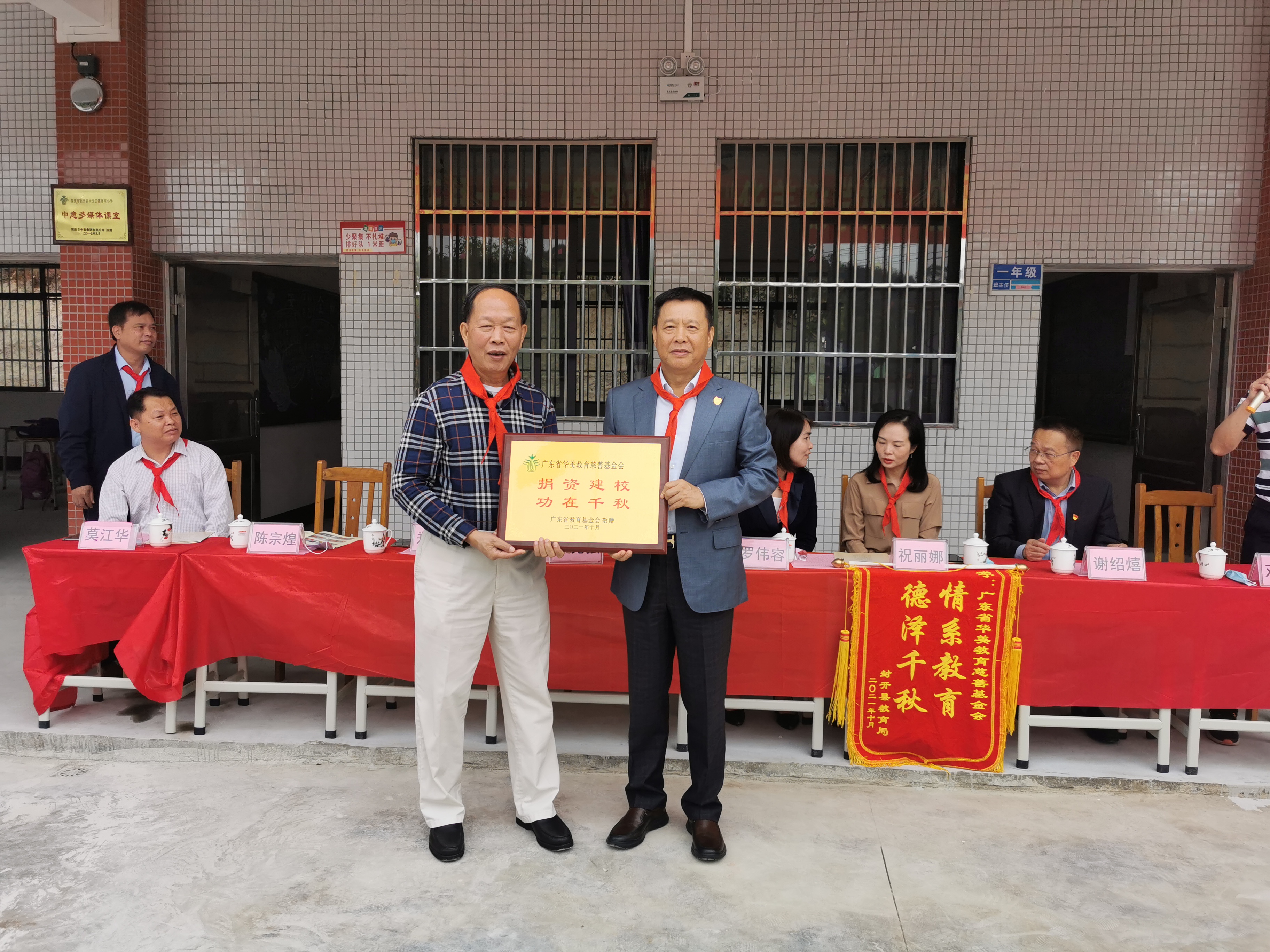 2021年10月29日上午,肇庆市封开县寨河学校“华美教学楼”落成启用仪式隆重举行。华美国...